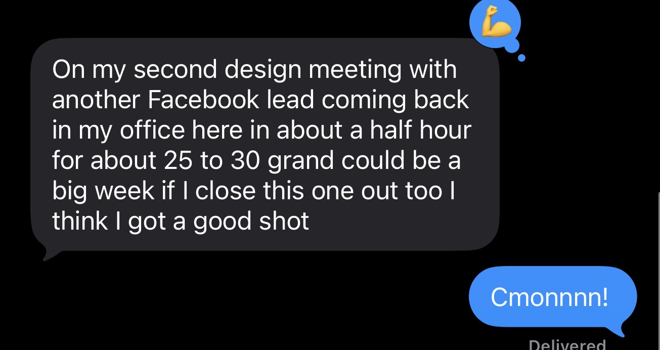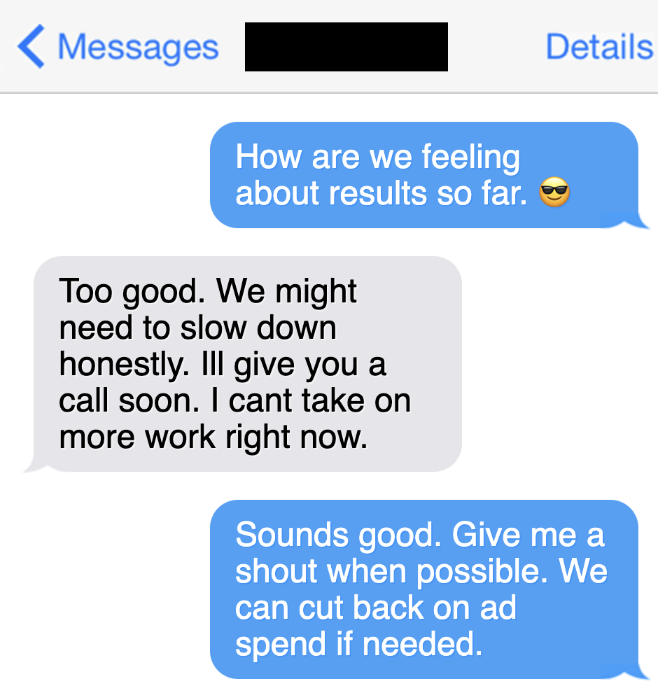 Receipts from the last two months of client text threads. Names blurred - numbers aren't.